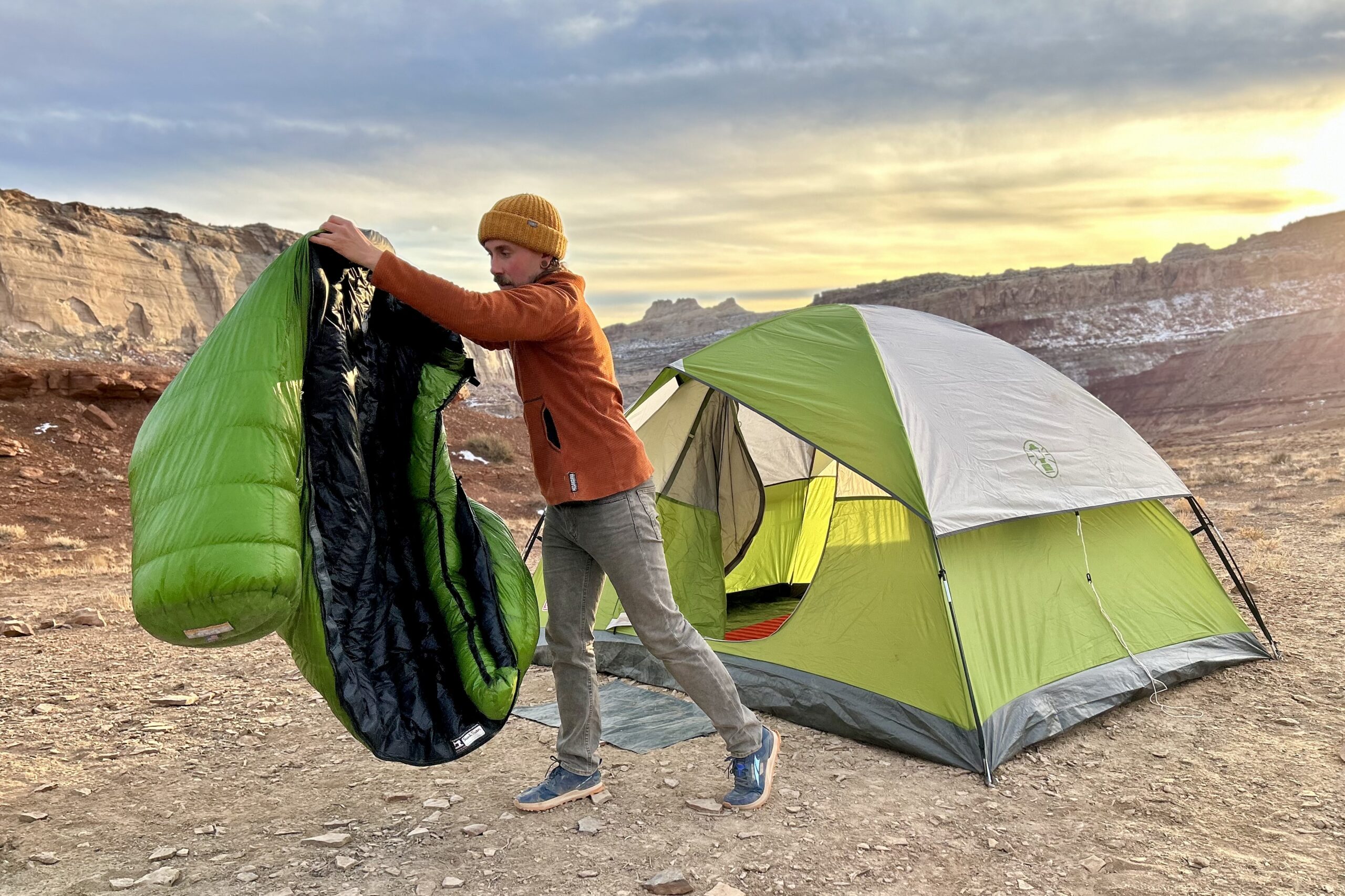 Check with the manufacturer to find the correct length sleeping bag to fit your height. If you’re on the edge, the longer size will usually be a better fit. With a quilt, consider bumping up one size to pull it over your head on really chilly nights. Mummy sleeping bags typically don’t have width options, so you’ll probably need to choose a different model if the cut is too slim. Most quilts come with the option of choosing a width, and we find that wider quilts are much more comfy if you side sleep or shift around at night.